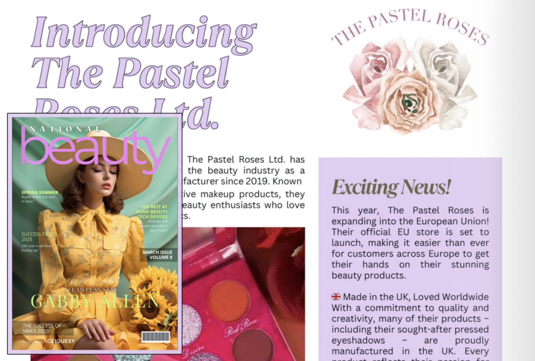 The Pastel Roses story began in the UK, where in 2019 we created the brand for makeup lovers who value high quality, long-lasting color, and intense pigments. Since then, our products have been winning hearts worldwide!